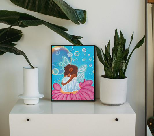 Ethereal Black Woman with Locs – Feminine Wall Art Print