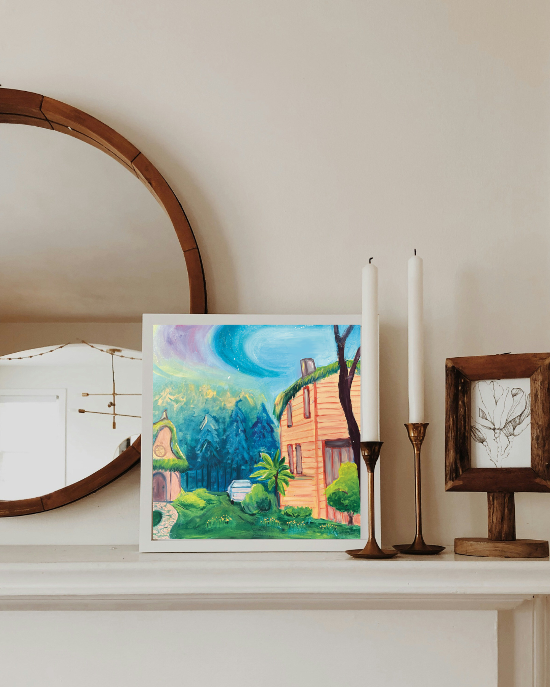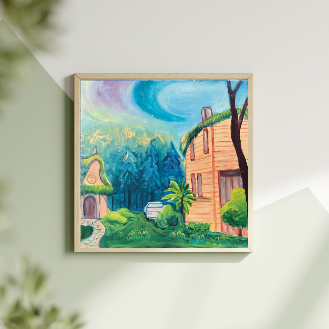 Available in 8x8", and 10"x10" this art print is printed on premium art paper to capture its vibrant colors and a soft, atmospheric finish that brings out every brushstroke and detail from the original acrylic piece. This artwork is ideal for atmospheric art lovers, nature-inspired decor enthusiasts, and those curating a soothing, visually captivating home environment.